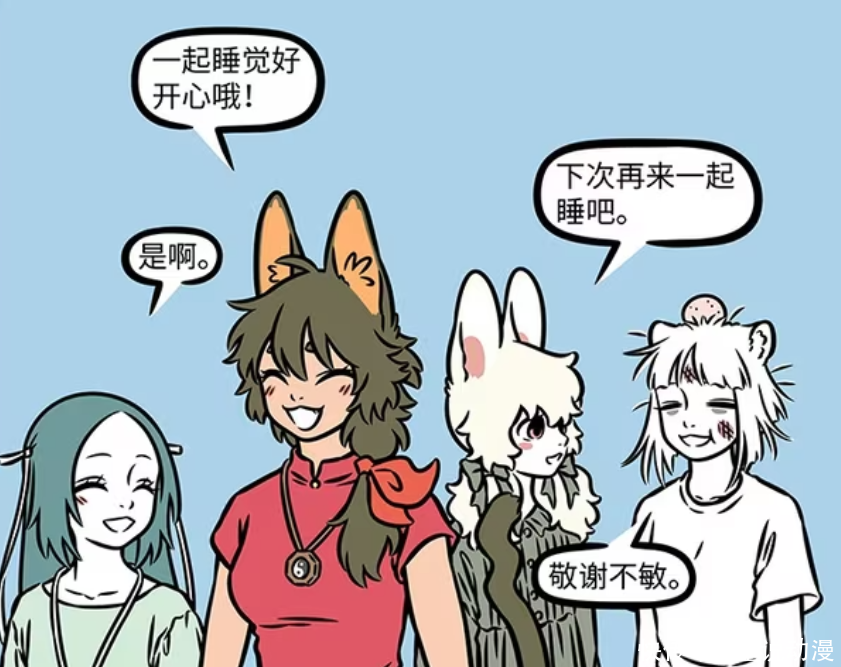 《非人哉》漫画中,九月、小玉、瓦陶陶和精卫是闺蜜股腰包,偶尔会打地铺一起睡觉。可是除了九月之外,其他三人睡觉的时候都不安分。瓦陶陶踩吐九月,精卫吓哭九月,小玉则是蹬飞九月。一觉睡下来,受伤的只有九月。如果下一次还有闺蜜四人一起睡觉,九月肯定不会参加。